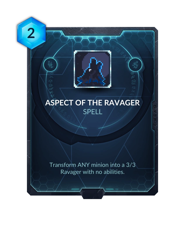 | Ability | Transform ANY minion into a 3/3 Ravager with no abilities. |