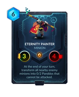 | Ability | At the end of your turn, transform all nearby enemy minions into 0/2 Panddos that cannot be attacked. |