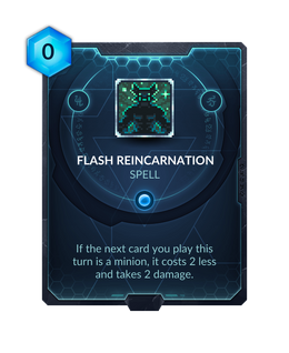 - The effect of Flash Reincarnation got reworked in patch v. 1.83. Now it doesn't stack anymore and because of the new wording the order in which to play cards got very important. The next card played after Flash Reincarnation has to be a minion or you lose Flash Reincarnation's effect!