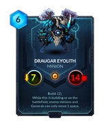 | Draugar Eyolith | 6 | 7 | 14 | Build: (2). While this is building or on the battlefield, enemy minions and Generals can only move 1 space. | |||