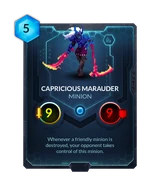 | Capricious Marauder | 5 | 9 | 9 | Whenever a friendly minion is destroyed, your opponent takes control of this minion. | |||