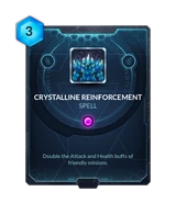 | Crystalline Reinforcement | 3 | Double the Attack and Health buffs of friendly minions. | |||||