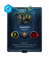 | Gigaloth | 4 | 7 | 7 | Build: (2). Whenever this minion attacks, other friendly minions gain +3/+3. | |||