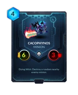 | Cacophynos | 4 | 6 | 3 | Dying Wish: Destroy a random nearby enemy minion. | |||