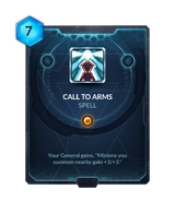 | Call to Arms | 7 | Your General gains, "Minions you summon nearby gain +3/+3." | |||||