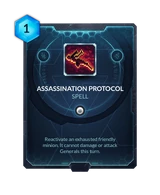 | Assassination Protocol | 1 | Reactivate an exhausted friendly minion. It cannot damage or attack Generals this turn. | |||||